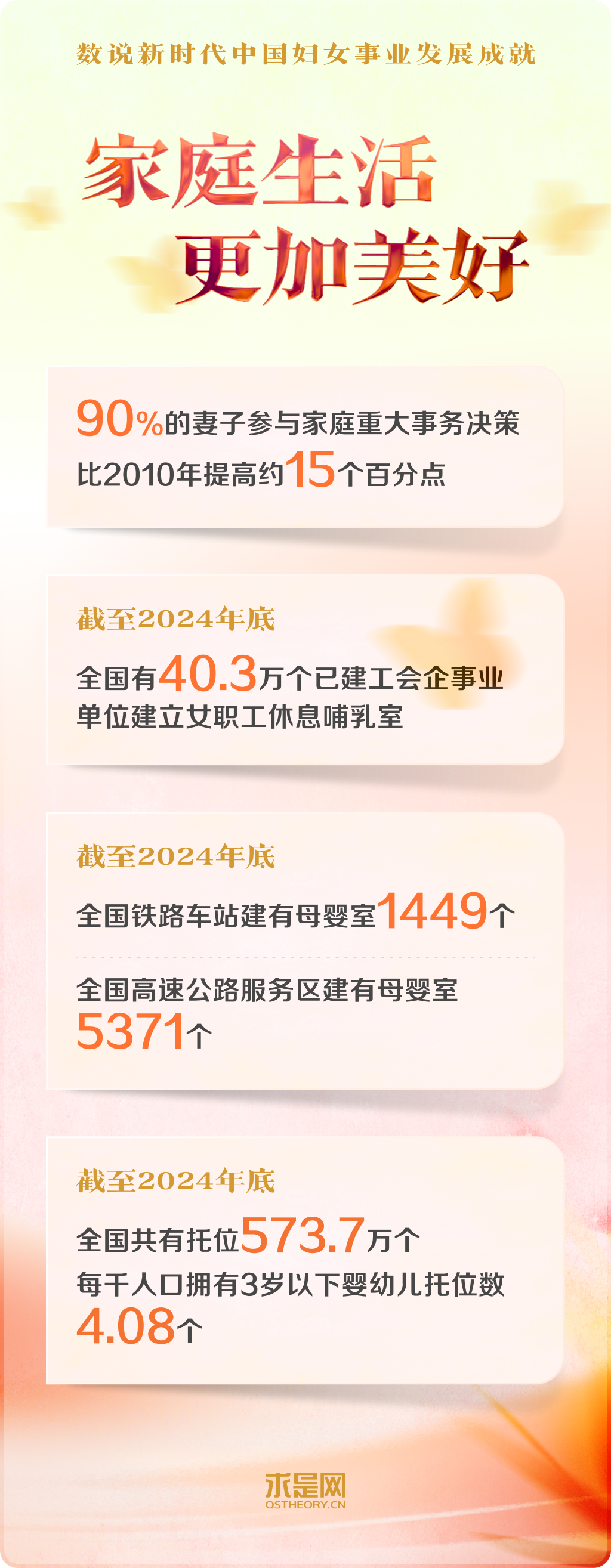 党的十八大以来,以习近平同志为核心的党中央把保障妇女合法权益、促进男女平等和妇女全面发展,作为中国式现代化的重要内容,对妇女事业发展作出一系列开创性、全局性、长远性的重大决策部署。中国在幼有所育、学有所教、劳有所得、病有所医、老有所养、住有所居、弱有所扶上持续用力,不断实现广大妇女对美好生活的向往。一组组数字,记录下新时代中国妇女事业跨越式发展的重大成就。