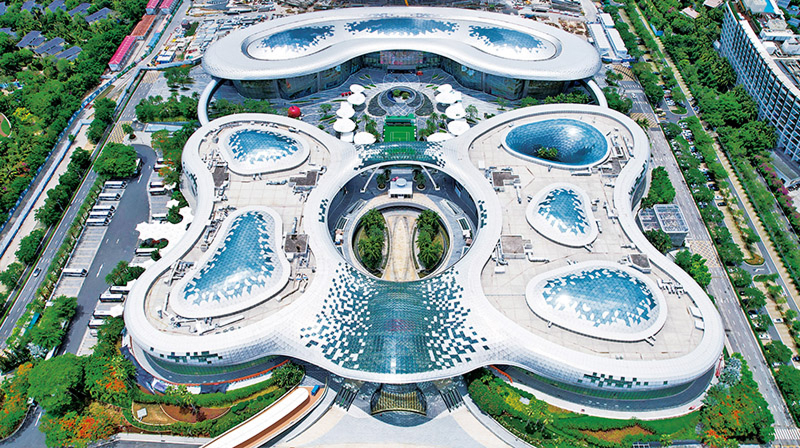 2025年11月6日,习近平总书记在海南省三亚市听取海南自由贸易港建设工作汇报时强调,“建设海南自由贸易港的战略目标,就是要把海南自由贸易港打造成为引领我国新时代对外开放的重要门户”。近年来,海南自贸港建设取得重要进展,封关运作准备、制度创新、产业升级等多项工作稳步推进。更加优惠的货物“零关税”政策,更加宽松的贸易管理办法,更加便利的通行措施,更加高效精准的监管模式,让海南自贸港的新动能、新优势、新活力持续涌现。图为2025年5月29日拍摄的三亚国际免税城。 新华社记者 杨冠宇/摄
