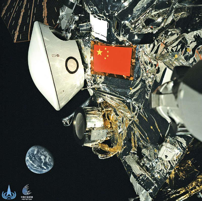 新质生产力由技术革命性突破、生产要素创新性配置、产业深度转型升级而催生。近年来,我国关键核心技术攻关不断带动新产业、新模式、新动能发展。图为2025年10月1日,国家航天局发布行星探测工程天问二号任务探测器在轨飞行期间获取的探测器与地球合影图像。 新华社发 国家航天局供图