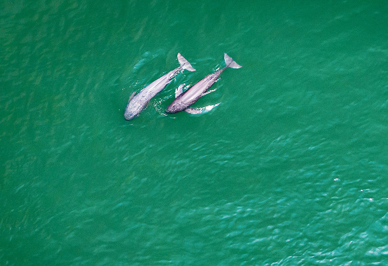 長江江豚被稱為長江生態的“晴雨表”。近年來,隨著長江生態環境持續改善,長江江豚種群數量不斷增加。圖為2021年5月11日,在湖北省宜昌市江邊,長江江豚在水中嬉戲。 新華社記者 肖藝九/攝